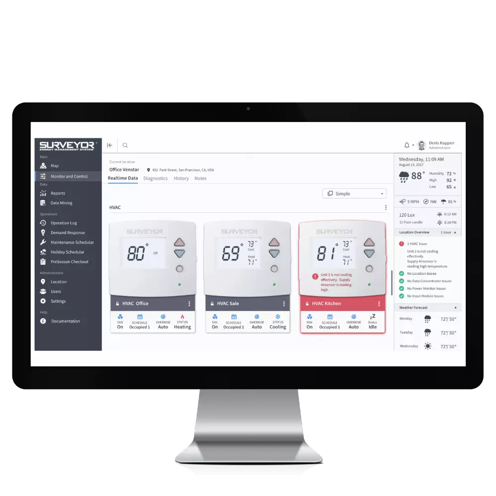 Surveyor gives multi-site retailers unprecedented visibility into their locations. Whether it is for a chain with hundreds or thousands of locations, Surveyor allows users to monitor and control store equipment remotely, as well as run exception reports and energy usage reports for the entire chain, individual locations, or by groupings of locations.