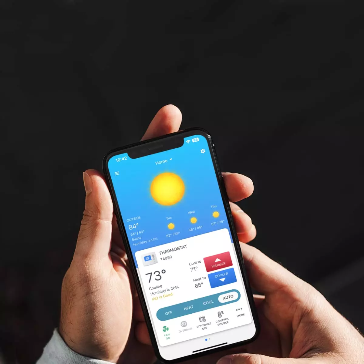 Using the mobile app and Skyport, Venstar WiFi-connected thermostats know when you are leaving or coming home, maximizing comfort and energy savings.
