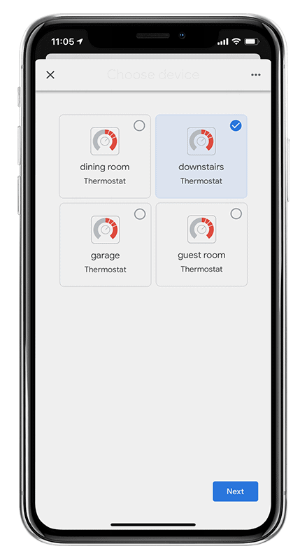 Okay (or “Hey”) Google, set the heat to (72) degrees on the (thermostat name) *